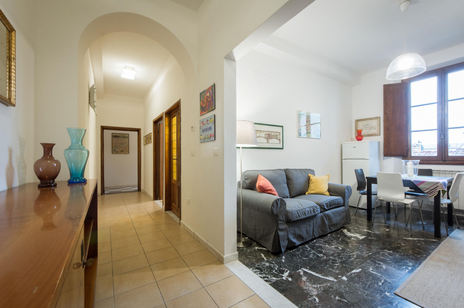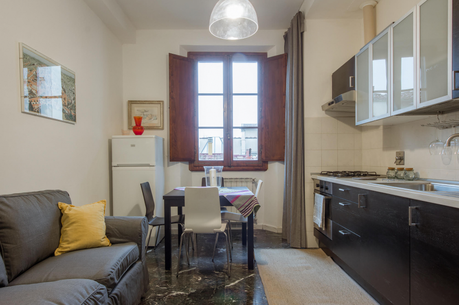 Wonderful and luminous 2 bedrooms located in the heart of the historical center just few minutes walking from Duomo and the main monuments of Florence. This luxury and high quality 2 bedrooms apartment is located in an historical building on the third floor and it is composed of one bedroom with 2 single size beds with a private bathroom with shower, a second bedroom with 3 single size beds, a spacious living room, fully furnished and equipped kitchen, a second bathroom with shower and balcony.